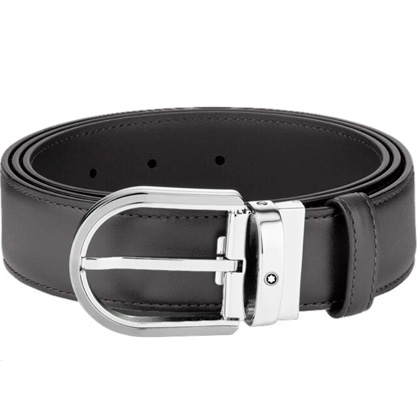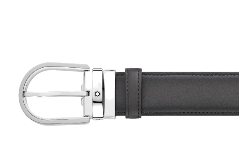 Кожаный ремень с пряжкой в форме подковы серого цвета 35 мм от магазина премиальных ручек Premium Pens в Братске.
